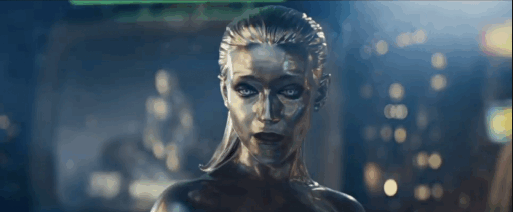 そんな平和な世界に、空から銀色の物体シルバーサーファーが現れます。発火で飛べるジョニーが、その姿を追いかけると「この星は捕食者によって喰われる」「もうギャラクタスは止められない」「時間は短い」と告げ、最後に解読不明のセリフを呟き立ち去ります。