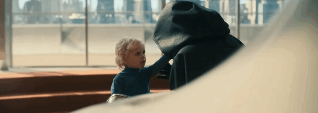 ミッドクレジットでは4年後、スーがフランクリンに絵本を読んでいます。「昨日読んだ本がいい」と「種の起源」を注文するフランクリンに「もっと他のものを」と探しにいくスーでした。本を持って戻ると、フランクリンの横にはフードを被り、ドクター・フォン・ドゥームのマスクを片手に持った男がいました。そして「ファンタスティックフォーはアベンジャーズ:ドゥームズデイに帰ってくる」とのクレジットが流れます。